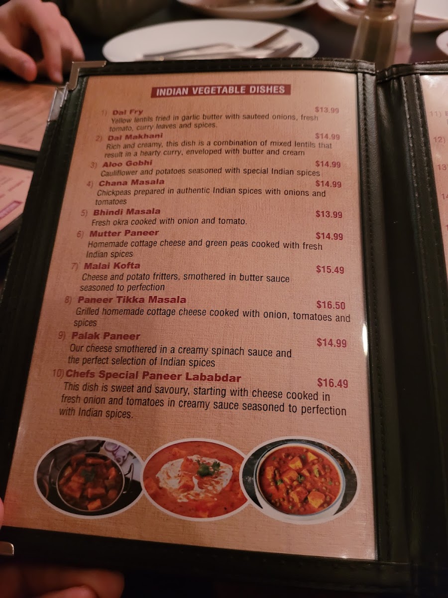 Vegetarians will not be disappointed with the wide array of flavorful options in the Indian Vegetarian Dishes section, including Dal Fry, Dal Makhani, and the classic Aloo Gobhi, along with the rich Chana Masala and Mutter Paneer.